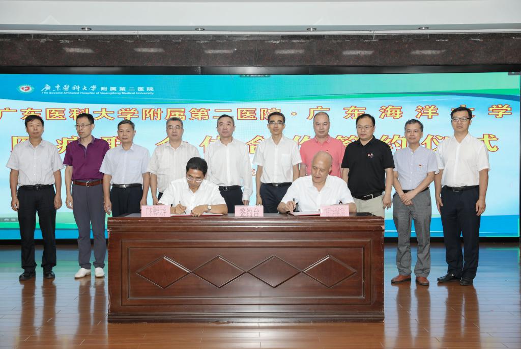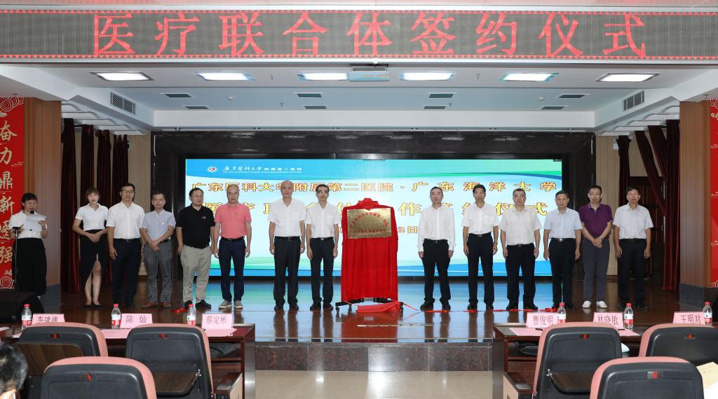 6月2日下午,开云kaiyun登录入口与广东医科大学附属第二医院合作签约及医联体揭牌仪式在附二院举行,标志着校院友好合作迈出了坚实的第一步,成为建设健康海大的大好事。广东医科大学附属第二医院党委书记蔡定彬,党委副书记、院长陈灿,党委副书记、纪委书记李建德,副院长缪辉来、姚卫民、孙小聪及我校党委书记曹俊明、党委副书记林晓敏出席签约及揭牌仪式,开云官网党委办公室,后勤与产业党委、学校门诊部负责人及附二院全体中层干部参加活动。