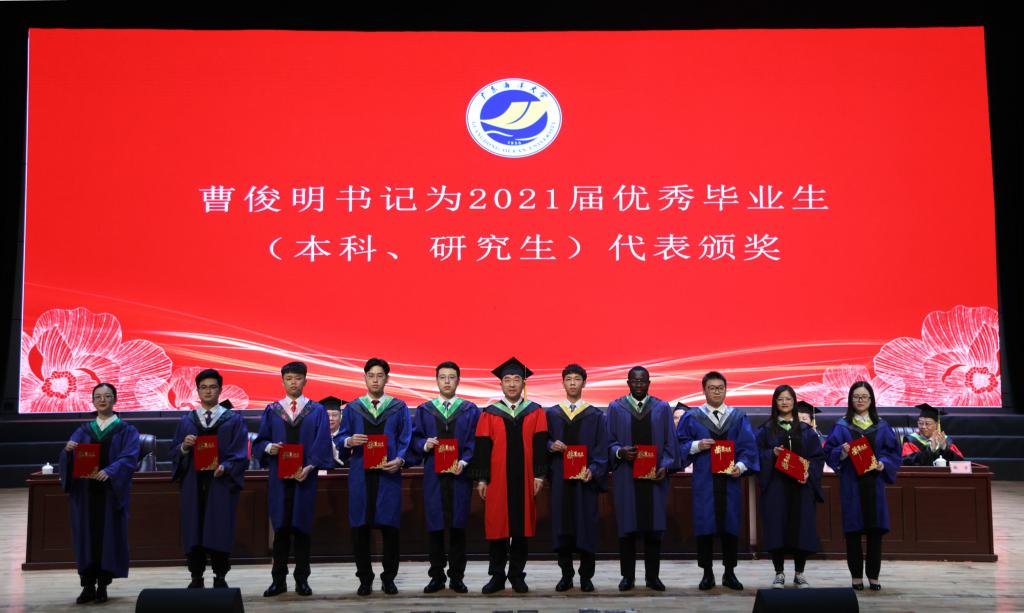 校党委书记曹俊明为2021届优秀毕业生代表颁奖