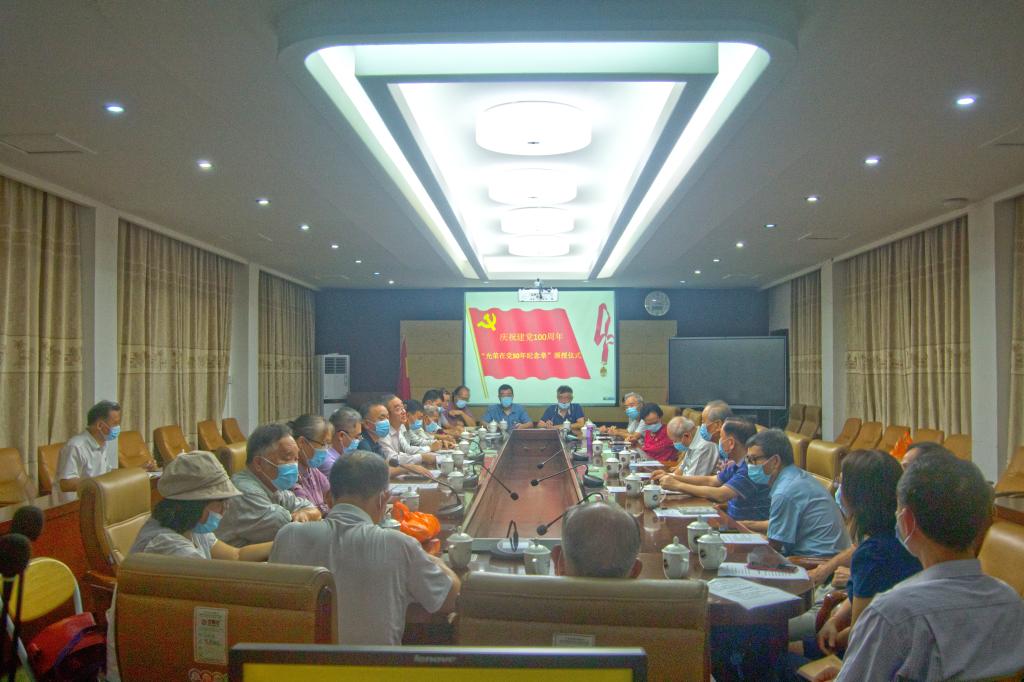 座谈会上,曹俊明书记代表学校党委向到会的8名老党员颁发“光荣在党50年”纪念章,感谢他们几十年如一日为党的教育事业所做的贡献。曹俊明通报了学校在发展规模、校园建设、学科发展、阳江校区建设、参与省实验室建设等方面的最新情况,介绍了学校努力克服新冠肺炎疫情带来的不利影响,在政治与意识形态安全、党风廉政建设、平安海大建设与校园安全稳定、人事制度改革、统战和离退休工作、脱贫攻坚等方面取得的成绩。