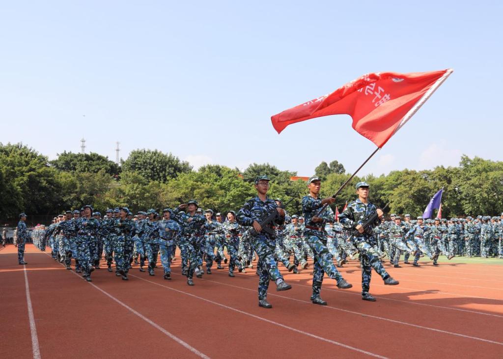 沙场秋点兵,学子展雄风。9月29日、30日,学校2021级新生军事技能训练成果汇报暨总结表彰大会分别在湛江、阳江两地校区的湖光东区运动场和锦绣广场隆重举行。学校党委书记曹俊明出席大会并讲话,学校领导彭权群、林晓敏、刘东超、宁凌、林宇出席会议,本次军事技能承训单位湛江市国防教育训练基地军训部部长余书斌、阳江市阳东区人民武装部部长霍永利参加大会并发言,阳江校区管委会和相关职能部门负责人以及各学院党委副书记、全体教官、跟训老师、参训新生等约6000人参加大会,另有4000余名新生在线观看了直播。大会由副校长、军训旅旅长刘东超主持。