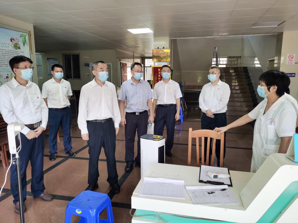 在湖光校区校门诊部,曹俊明一行深入查看了预检分诊情况,向假期值班医护人员致以节日问候,希望他们加强值班值守,努力为留校师生提供周到可靠的医疗保障服务。