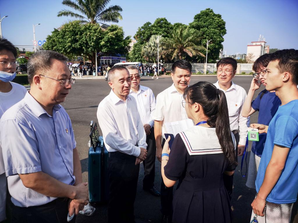10月1日上午,国庆假期第一天,学校党委书记曹俊明,党委副书记、纪委书记彭权群,党委常委、副校长刘东超深入湖光校区检查校园安全稳定和安全生产运行情况,看望慰问假期留校学生和值班值守工作人员,强调要深入学习贯彻习近平总书记“七一”重要讲话精神以及关于疫情防控和安全生产重要论述和重要指示批示精神,切实抓好常态化新冠疫情防控和校园安全稳定各项工作。学校党委办、学生处、保卫处等职能部门负责人参加检查。