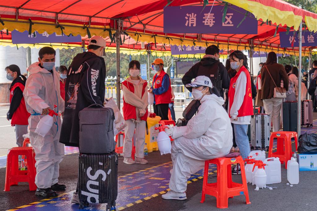 “欢迎回校,请各位同学戴好口罩……”校门前,返校学生在工作人员和学生志愿者的引导下,有序排队,依次通过行李消毒、查看健康码、返校申请的审核结果、体温检测、人脸识别等流程。现场还设置了临时观察区、志愿者服务站、治安报警点和专门为跨省返校学生设立的核酸检测点,对跨省返校和重点关注地区的返校学生进行“三天两检”,确保核酸结果正常后方可入校。各职能部门、各学院辅导员、学生志愿者、医护人员通力合作,全方位全流程地守护返校学生安全和健康。