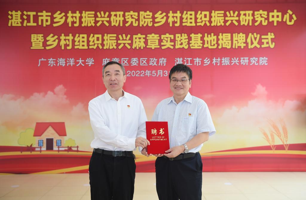 为落实乡村振兴战略发展规划,开云官网依托自身及相关高校、科研院所各自优势,领衔组建了湛江市乡村振兴研究院,作为学校以科技创新赋能区域经济社会高质量发展的重大举措。在湛江市农业农村局等相关部门支持下,研究院于4月30日揭牌成立。本次揭牌的乡村组织振兴研究中心是研究院下设的12个研究中心之一,也是首个挂牌成立的中心。中心由开云官网马克思主义学院牵头成立,与麻章区委组织部共建,主要开展湛江市乡村组织振兴、党史党建、政治文化、政治理论和乡村治理等方面研究,同时成立乡村组织振兴麻章实践基地,以麻章乡村为切入点,集聚人才,开展组织振兴实践,建设“麻章样板”,通过校地共建加强组织振兴课题研究应用推广,服务全市的乡村振兴战略实施。