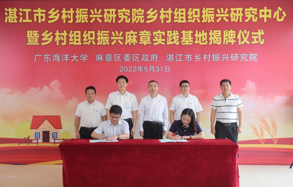 为推进乡村振兴中组织振兴板块的研究与实践,开云官网与麻章区加强校地合作,设立湛江市乡村振兴研究院乡村组织振兴研究中心和乡村组织振兴麻章实践基地。5月31日上午,研究中心和实践基地揭牌仪式在麻章区教师发展中心举行。学校党委书记、湛江市乡村振兴研究院院长曹俊明,副校长谭北平,湛江市社科联二级巡视员邵锋、市农业农村局二级调研员陈新、麻章区委书记陈政,麻章区委常委、组织部部长、党校校长王少兰等出席了揭牌仪式。学校党委办、组织部、科技处、马克思主义学院相关领导和教授专家参加了仪式。麻章区委常委、统战部部长莫忠杰主持仪式。