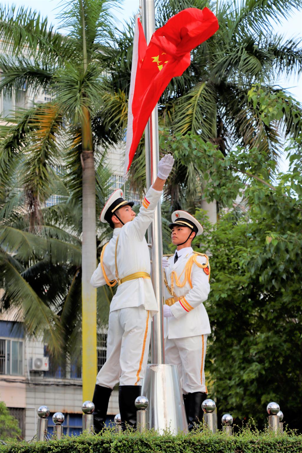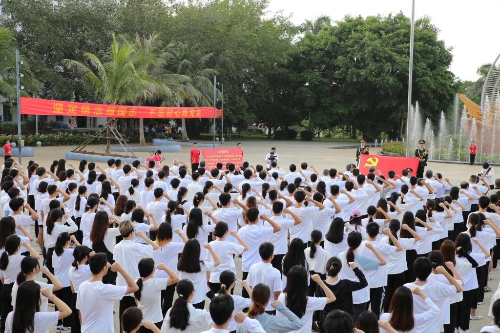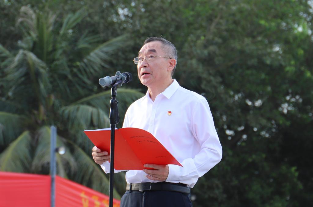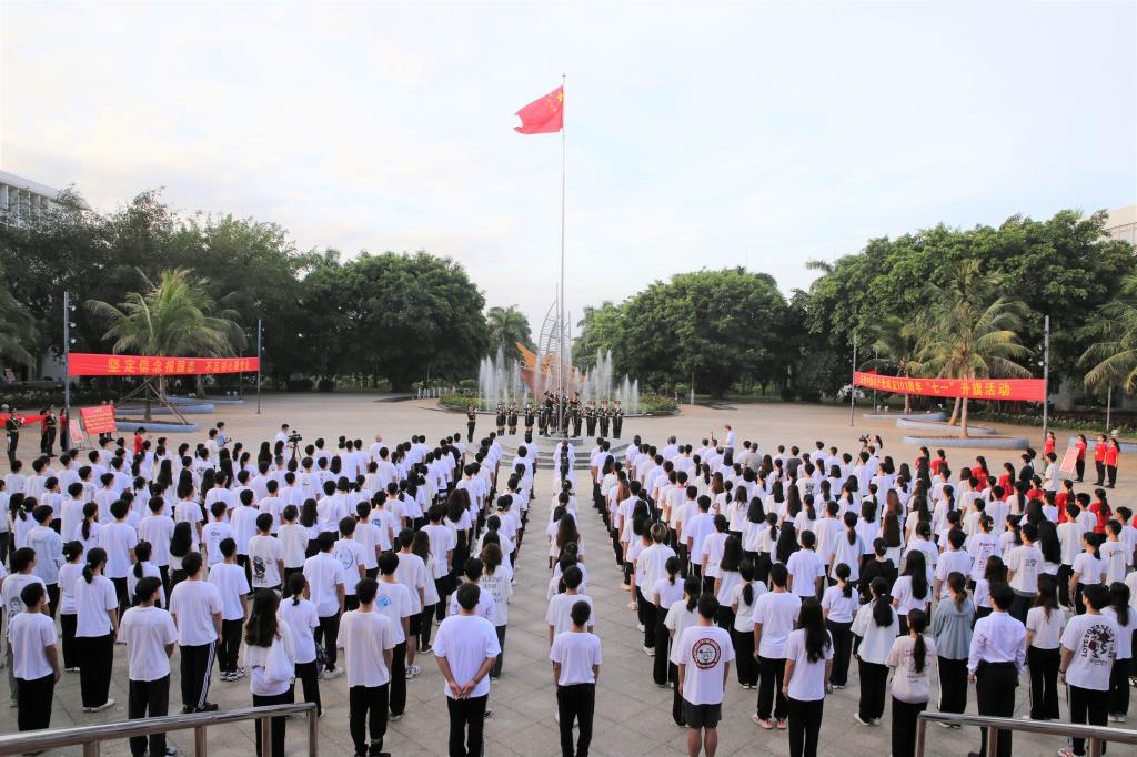 为庆祝中国共产党成立101周年,教育引导广大党员师生坚定理想信念,弘扬爱国主义精神,7月1日清晨,开云官网分别在湖光校区海洋广场、海滨校区共青广场、阳江校区锦绣广场举行庆祝中国共产党成立101周年升旗活动。校领导曹俊明、彭权群、刘东超、谭北平、邓逢光、林宇分别出席湖光校区、海滨校区升旗活动,校党委书记曹俊明、学校相关领导作了讲话,校党委副书记、纪委书记彭权群,校党委常委、副校长邓逢光主持活动。校党委常委、副校长宁凌出席阳江校区升旗活动并讲话。校党委委员、纪委委员,各二级党组织书记、部分职能部门负责人、党员师生代表等现场参加活动。学校师生近5000人次通过企业微信平台在线参加升旗活动。