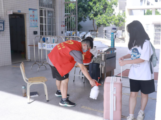 进入学生公寓前行李消毒