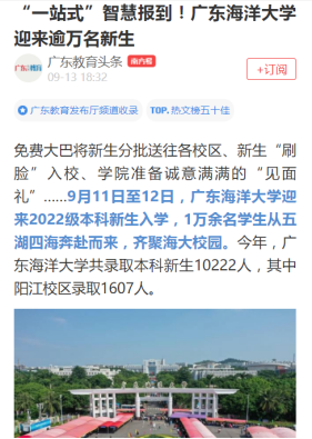 广东新闻联播报道:开云kaiyun登录入口阳江校区2022年迎新