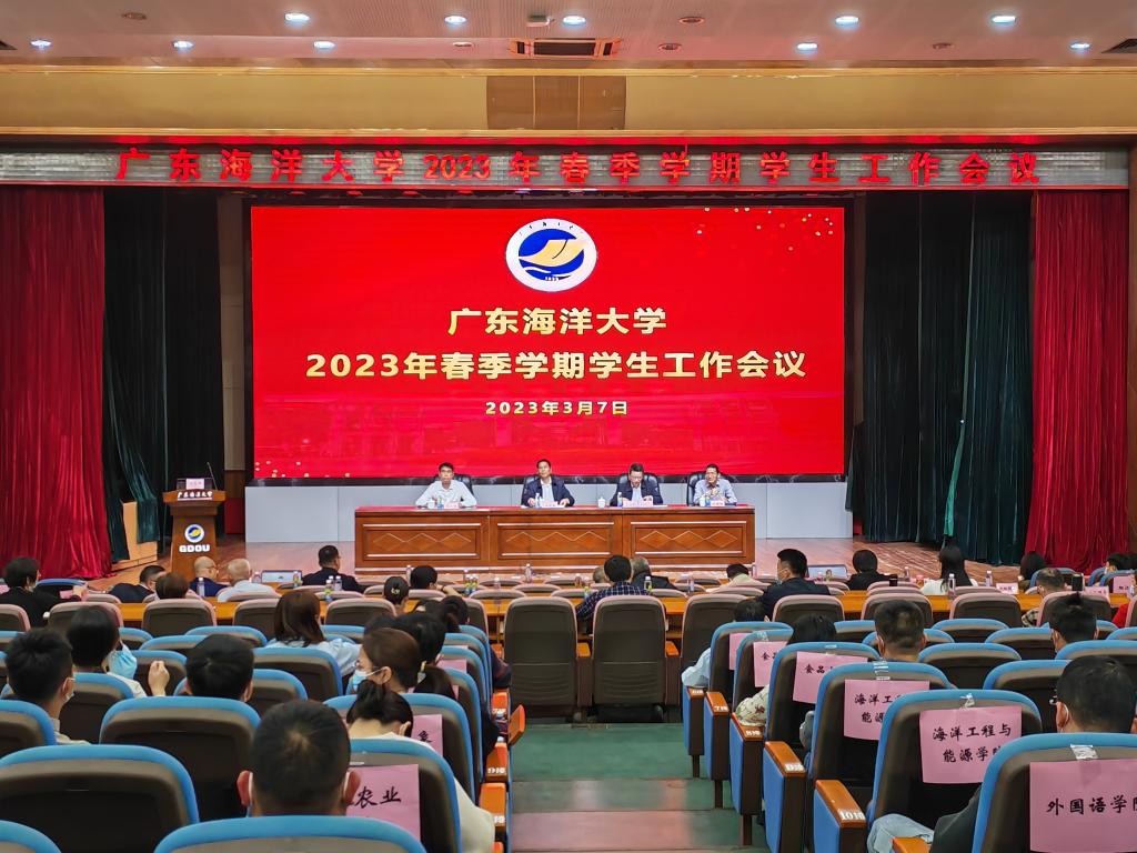 为深入贯彻落实党的二十大精神和学校2023年春季学期工作会议精神,谋划推动学校学生工作高质量发展,3月7日下午,学校在湖光校区广学楼多功能厅召开2023年春季学期学生工作会议。学校党委副书记林晓敏,学生工作部(处)、研究生工作部、校团委等部门的全体工作人员,阳江校区全体学工人员、各学院分管学生工作领导以及全体辅导员共200余人参加会议。会议由学生工作部部长肖文辉主持。