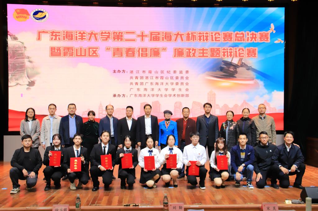 12月2日晚,第二十届"海大杯"辩论赛总决赛暨霞山区“青春倡廉”廉政主题辩论赛在湖光校区广学楼多功能厅举行。学校党委副书记林晓敏出席辩论赛。霞山区常委、纪委书记、监委主任钟树旭,共青团霞山区委书记梁亮,学校纪委副书记、纪委办主任、监察处处长曾庆新,校团委书记郑一鸣,副书记袁仁广、文学与新闻传播学院党委副书记胡墨,海洋工程与能源学院党总支副书记尹霞,以及霞山区纪委、霞山区团委和各院师生代表等约300人观看了比赛。