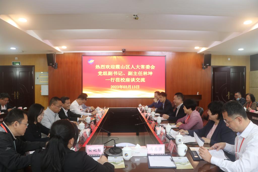 3月13日下午,湛江市霞山区人大常委会党组副书记、副主任林坤、市人大代表庞小芳、周小萍、李智行和区人大代表陈东等一行来校调研交流,霞山区政府副区长苏国亮等陪同调研。校长潘新祥、相关部门、学院负责人参加调研座谈。