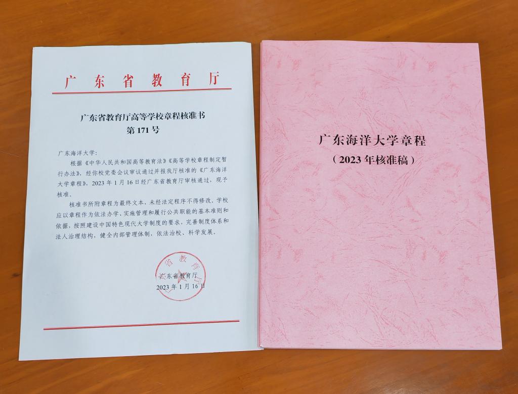本次《章程》修订,既继承了传统,保留了原章程的核心部分,又与时俱进,增添了体现时代要求的新内容,符合学校实际。主要修订内容有:一是框架结构调整,进一步理顺学校治理体系。二是序言中增加学校是“广东现代海洋水产教育的发端”的表述,明确学校在全省海洋水产教育方面的历史地位。三是突出强调党的领导、办学性质、办学方向和办学目的。四是将人才培养、科学研究、社会服务、文化传承创新、国际交流与合作等主要办学活动分别予以专条明确。五是调整学术委员会下面的专门委员会,独立设置学位评定委员会和职称评审委员会;学院层面设置学术分委员会替代教授委员会。
