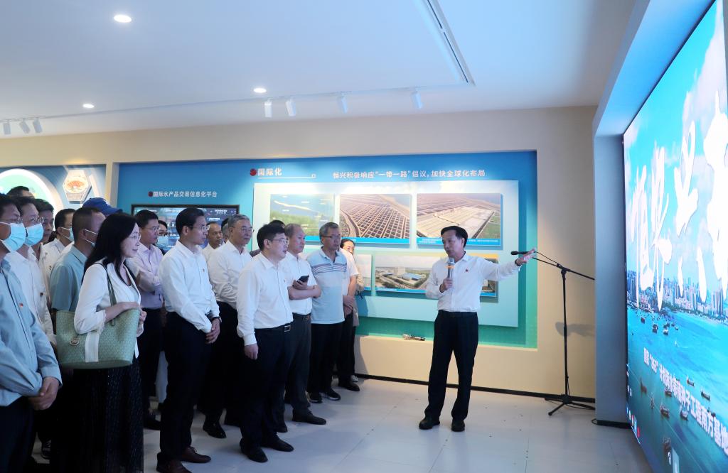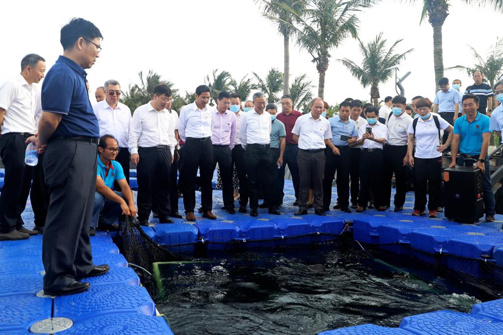主题教育读书班一行实地参观了国家863计划种子基地科研展厅和育种鱼塘,了解湛江市海洋渔业种苗培育发展情况,以及围绕海洋经济动物亲本选育、苗种繁育等方面技术研究和产品开发的产学研合作情况,并就强化科技创新、积极建设海洋牧场、服务区域经济发展等方面进行了深入交流。