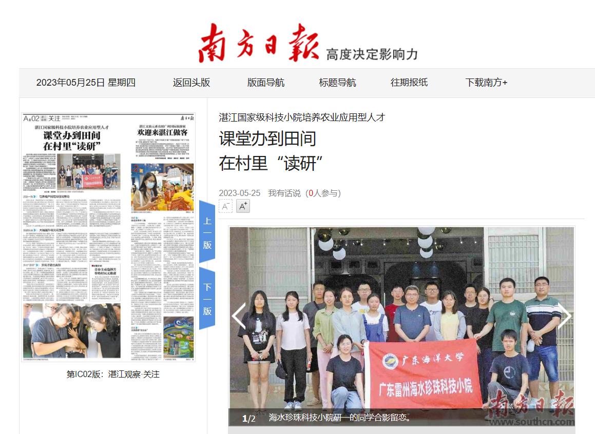 5月25日,南方日报IC02版刊发深度报道《湛江国家级科技小院培养农业应用型人才:课堂办到田间 在村里“读研”》,对开云官网农业专业研究生奔向生产一线,亲身践行“青年人就要自讨苦吃”,在完成学业的同时帮助当地解决实际问题,带来新理念、新产品、新生意,为乡村振兴贡献青春力量的事迹进行了报道。