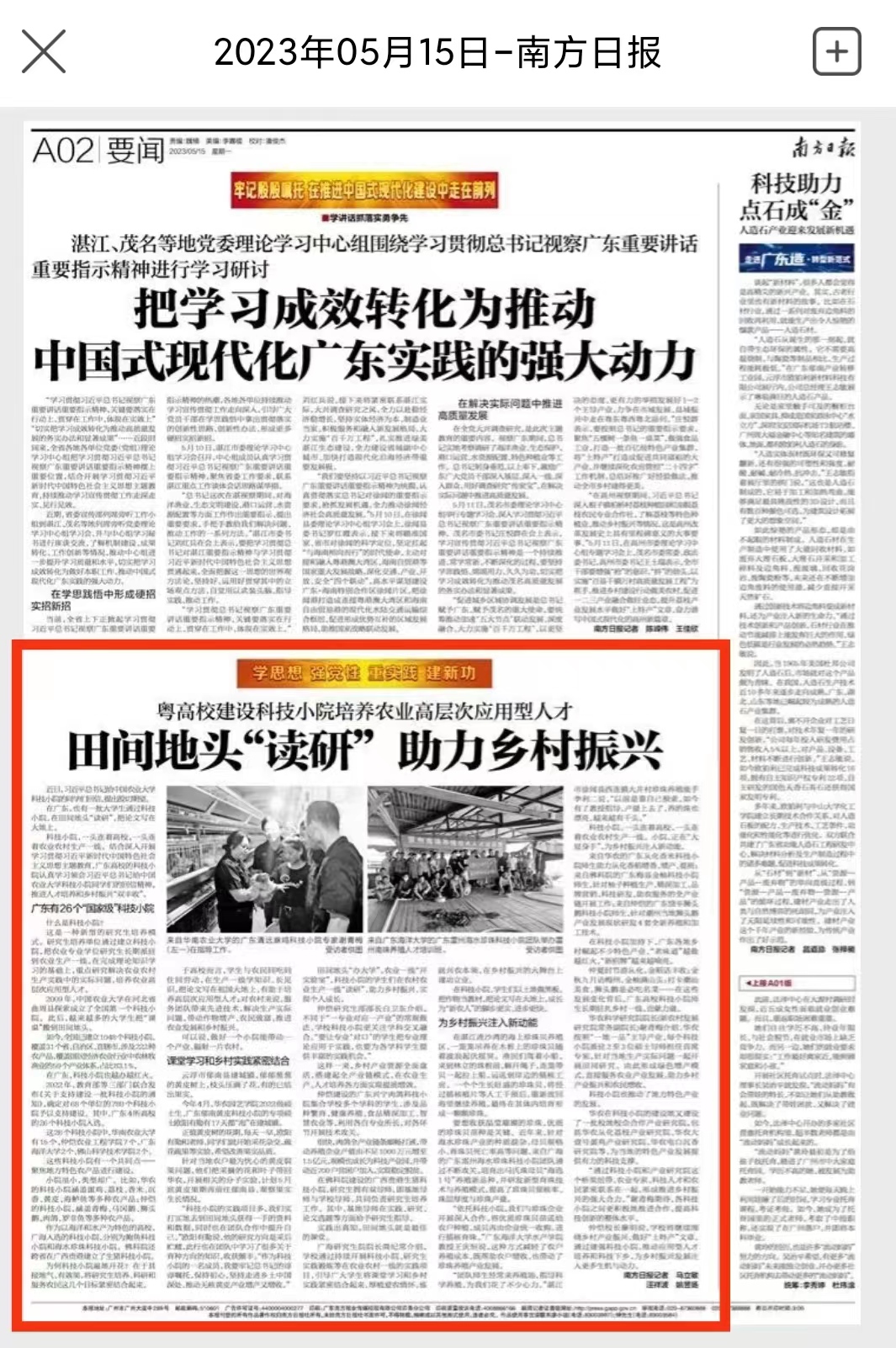 1.南方日报:湛江国家级科技小院培养农业应用型人才:课堂办到田间 在村里“读研”