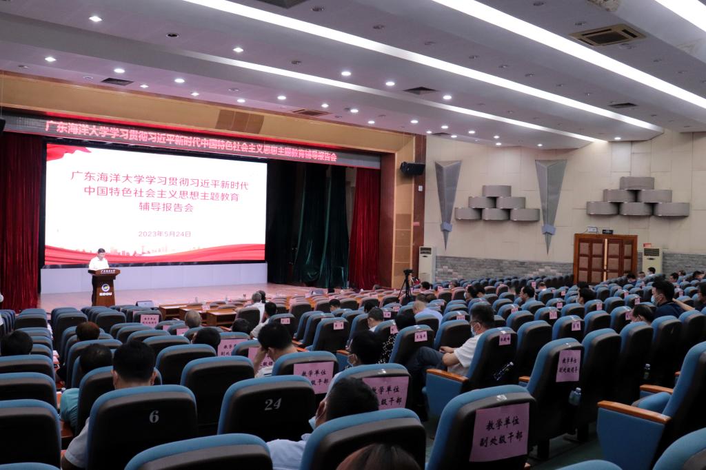 根据学校主题教育读书班计划安排,5月24日下午,学校在湖光校区广学楼多功能厅举行主题教育专题辅导报告会。学校党委书记杨洲主持报告会,全国人大代表、学校党委常委、副校长、党委理论宣讲团成员宁凌教授作了题为“深入学习贯彻习近平总书记视察广东重要讲话重要指示精神,为广东在推进中国式现代化建设中走在前列作出海大贡献”的辅导报告。报告会以线上线下相结合的形式举行,校领导林晓敏、高秀梅、谭北平、林宇和全校副处级以上干部现场参加学习,其他党员干部在线上参加学习。