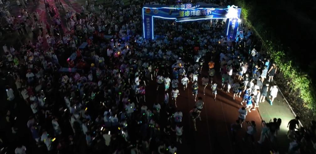 七点二十分,国旗护卫队护旗进场,活动在激昂的国歌声中拉开序幕。杨洲宣布活动开幕并鸣枪开跑,选手们手握荧光棒,奋勇向前,努力争先,用奔跑的激情与炫彩的荧光挥洒自己的青春轨迹,用动感酷炫和闪闪荧光照亮了校园夜色。在活动终点,参赛选手和现场观众通过手掌印和签名等方式在背景墙上为2023届毕业生祝福加油,为保护海洋生态系统打卡接力。