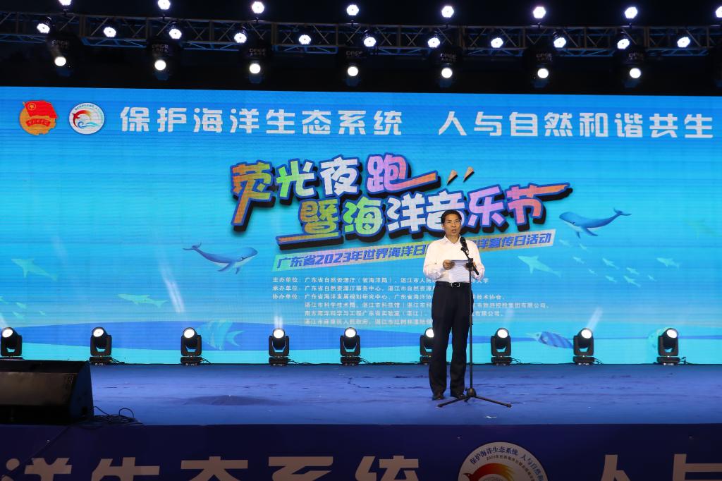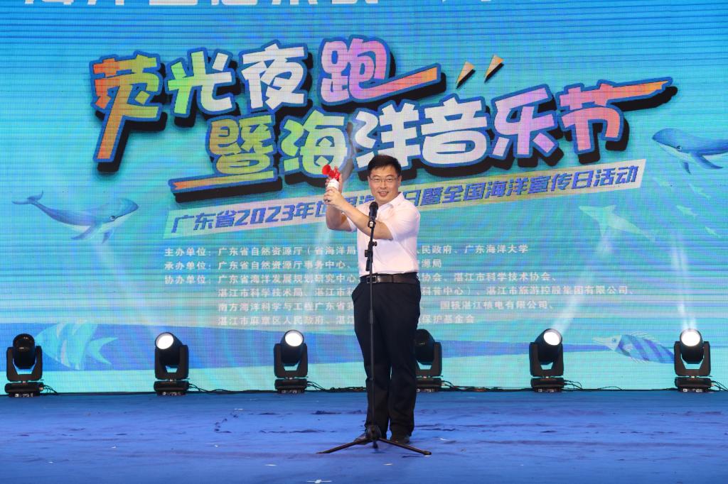 6月8日是第十五个“世界海洋日”,也是第十六个“全国海洋宣传日”,为引导广大学生进一步树立“关心海洋、认识海洋、经略海洋”理念,提高海洋日的影响力和吸引力,同时进一步丰富校园文化生活,鼓励海大学子响应“走下网络,走出宿舍,走向操场”三走活动的号召,6月5日,校团委在湖光校区西区体育场举行开云kaiyun登录入口2023年“保护海洋生态系统,人与自然和谐共生”荧光夜跑暨海洋音乐节活动。学校党委书记杨洲、党委副书记林晓敏、广东省自然资源厅海洋规划与经济处处长黄国锐、广东省自然资源厅事务中心主任朱雷,省自然资源厅相关处室,厅属有关单位代表,民主党派和媒体代表,校长办、校团委、后勤保障处、教育信息中心、体育与休闲学院领导老师及5000多名学生参加本次活动。