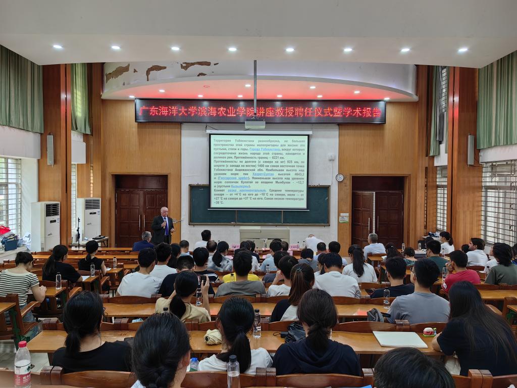 6月20日,学校在湖光校区兴农楼109多媒体室举行拔尖人才讲座教授苏莱曼诺夫·苏纳图拉(SULAYMANOV SUNNATULLA)教授聘任仪式暨学术报告会。滨海农业学院、国家耐盐碱水稻技术创新中心华南中心教师及学生代表110余人参加了聘任仪式,仪式由滨海农业学院院长郑殿峰主持,苏莱曼诺夫·贾姆希德现场翻译。