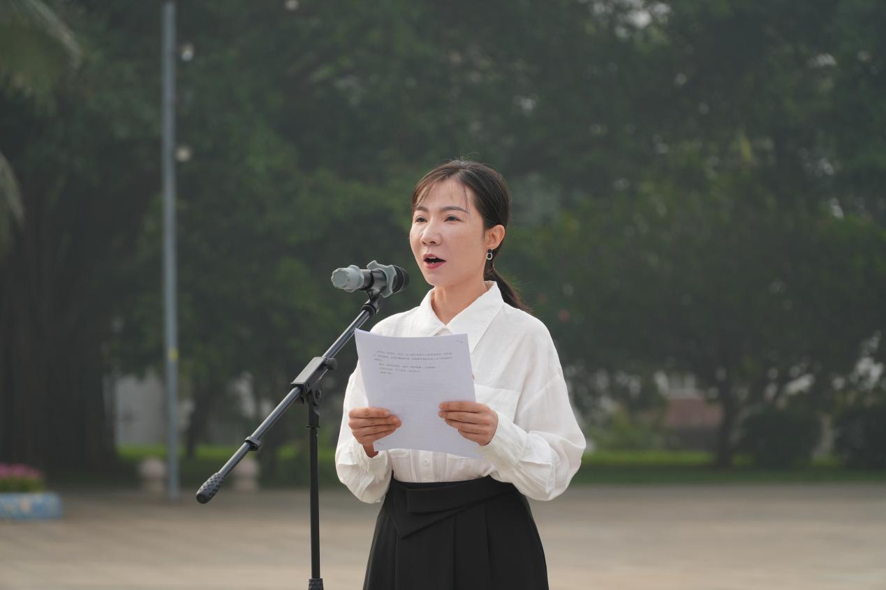 学校领导杨洲、林晓敏、高秀梅、谭北平、宁凌、林宇,学校党委委员、纪委委员,全体中层正职干部和学生代表共约1000人参加现场活动。其他师生通过企业微信直播线上参加升旗活动。学校党委书记杨洲作国旗下讲话,校党委副书记林晓敏主持湖光校区活动。副校长邓逢光出席海滨校区活动并作讲话。