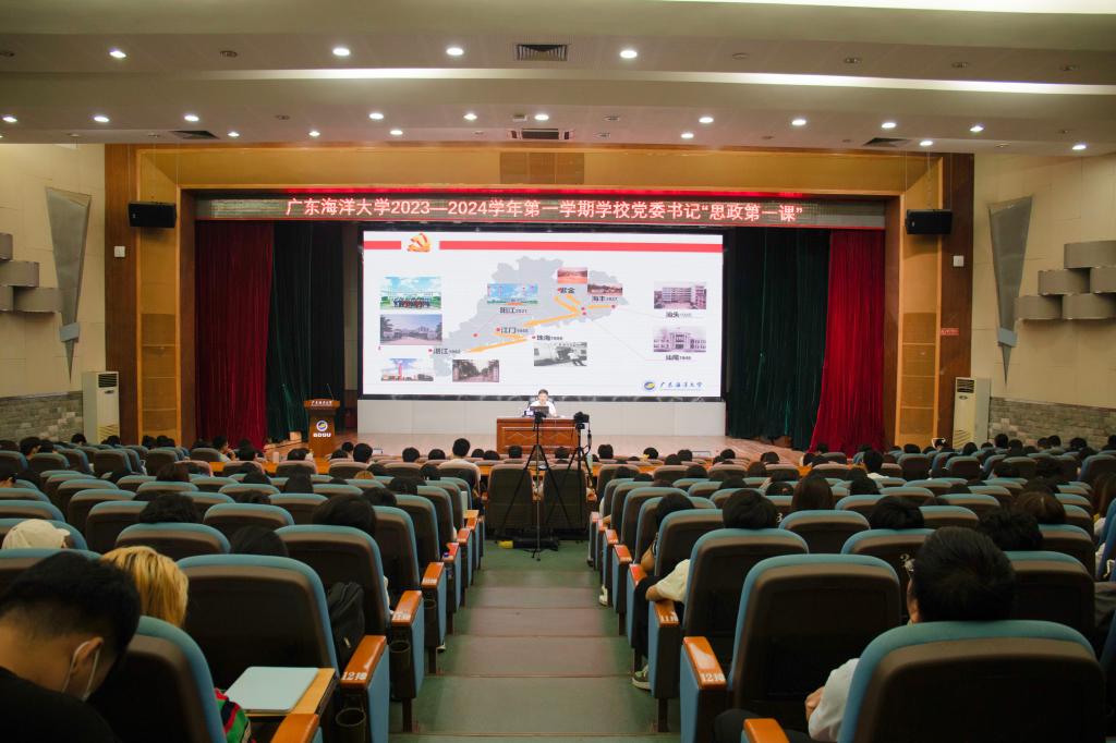 9月22日上午,学校党委书记杨洲以《牢记嘱托 砥砺奋进 为中国式现代化的广东实践贡献青春力量》为题,在湖光校区广学楼多功能厅为学生讲授2023年秋季学期“思政第一课”,勉励同学们以实现中华民族伟大复兴为己任,不负韶华,争做有志、有识、有恒青年。200余名学生代表现场参加学习,近2000人次学生通过线上直播方式参加学习。