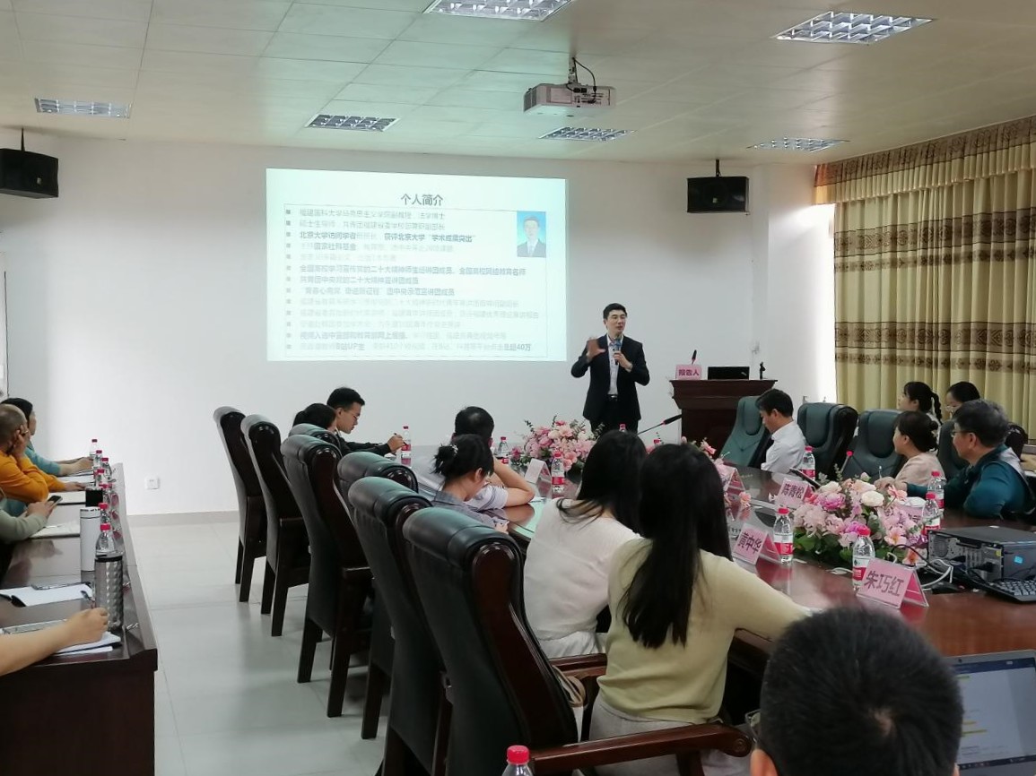 全国高校学习宣传党的二十大精神师生巡讲团成员、国家社科基金高校思想政治理论课研究专项获得者、硕士生导师林明惠副教授以《高校思政课教师科研能力提升的“道”与“术”》为题,从研究能力何以必要、研究水平何以提升、研究成果何以产出三个方面介绍了教学和科研之间的辩证关系、二者如何科学有效地相互转化与促进,并建议思政课教师要敢于创新、敢于挑战、敢于突破,用心、用情、用力讲好高校思政课。