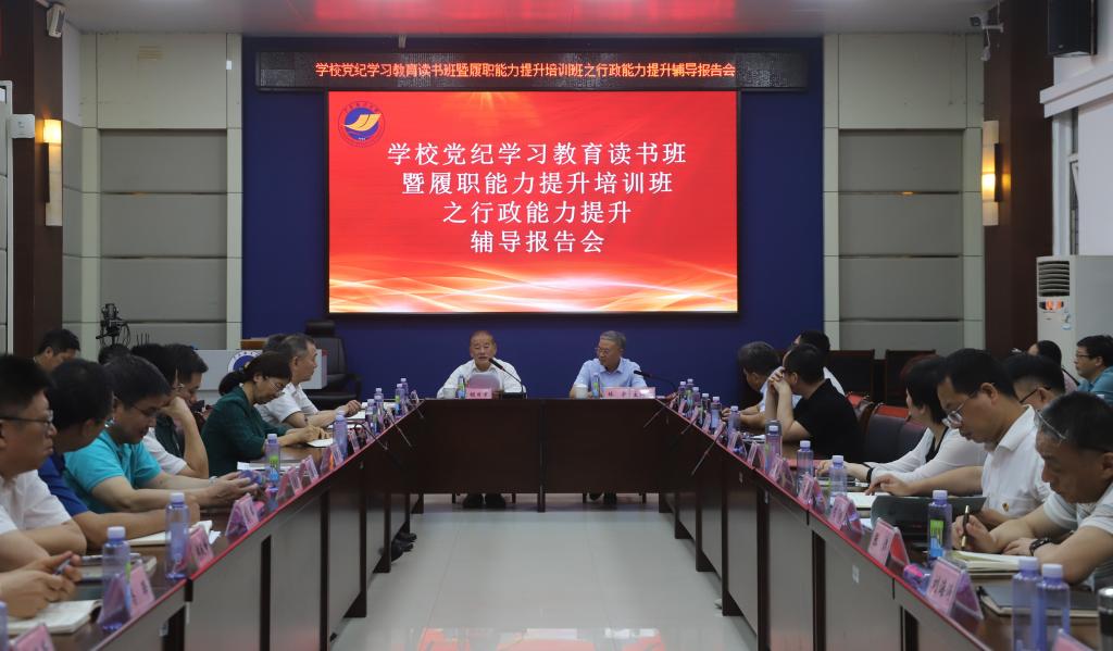 5月24日,为深入开展党纪学习教育,进一步强化学校中层领导干部纪律意识,提升履职能力,推动加快建设国内一流、国际知名高水平海洋大学,原党委书记陈年强、校长胡日章受邀为学校中层干部作党纪学习教育读书班暨履职能力提升班之行政能力提升辅导报告会。党委常委、宣传统战部部长林宇主持报告会,各单位、部门的主要负责人参加会议。