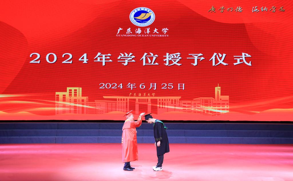 典礼上,校领导为优秀本科毕业生代表、优秀研究生毕业生代表、优秀志愿者代表、创新创业代表、退役士兵代表、考研学生代表等2024届优秀毕业生代表颁奖。“学海无涯,永攀高峰!”“向海图强,筑梦深蓝!”“梦想彼岸,我已登陆!”“青春引领创业,创新塑造未来!”“家国情怀,青春担当!”……领奖台上,毕业学子们发出“拼搏正当时”的宣言。