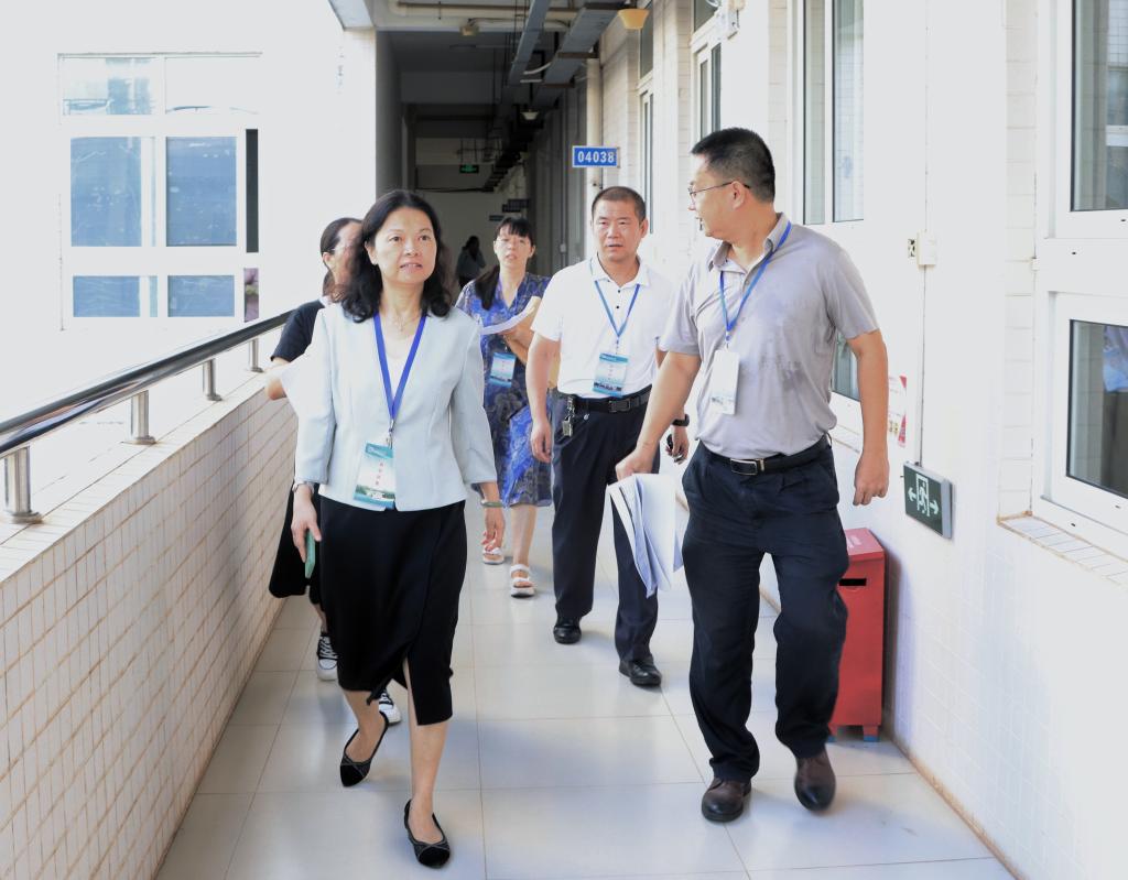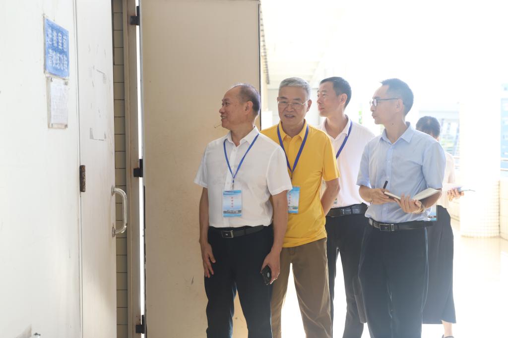 谭平一行在湖光校区钟海楼查看师生上课、教学设施保障、校园清洁等情况