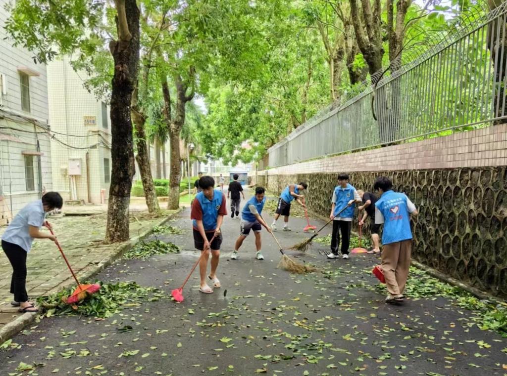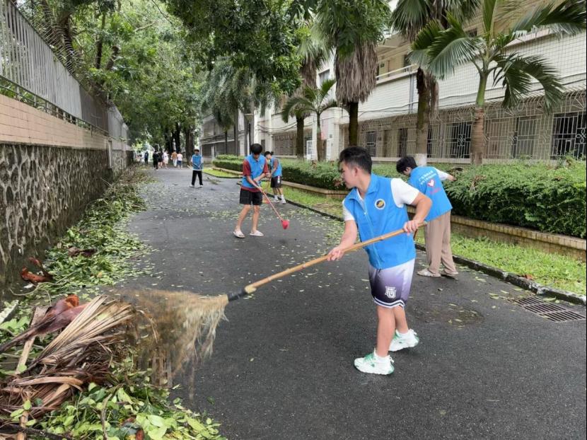 众志成城,迎风而战。“为美丽海大贡献一份力量!”“青春担当,有我!”一支支彰显青春担当的“清障小分队”活跃在校园各处,一抹抹“志愿红”成为校园独特的一道风景,来自全校各学院的海大学子,或积极响应学生工作部、校团委志愿服务的号召,或自发参与到校园重建恢复工作,他们奔赴校园内各主要道路,认真忘我地劳动,使用铲子、扫把等工具,逐一将被强风吹倒和影响通行的树木树枝生活垃圾、淤泥积水进行集中清理清除,用心让这所美丽校园再次焕发生机,让学校以最佳面貌迎接新生到来。
