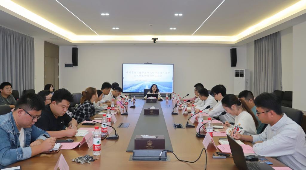 与会人员集中学习了习近平总书记给中国海洋大学全体师生的重要回信精神。会议强调,习近平总书记的重要回信饱含对青年投身海洋强国建设的殷切期待,共青团作为党的助手和后备军,要按照学校党委的部署要求,深入学习贯彻习近平总书记重要回信精神,充分发挥自身优势,动员和组织学校青年力量,积极投身海洋强国建设,为实现海洋梦、强国梦贡献力量。