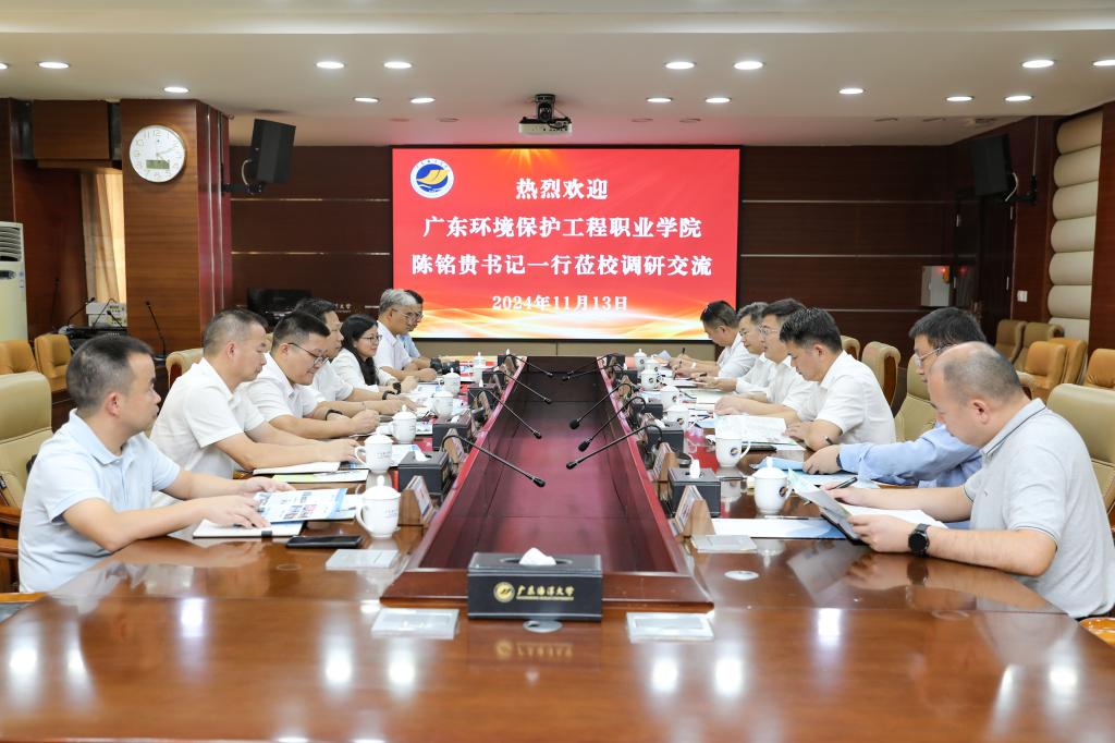 11月13日,广东环境保护工程职业学院党委书记陈铭贵、副书记钟真宜和学院相关单位(部门)领导等一行7人来开云官网交流。学校党委书记杨洲接待了陈铭贵一行并主持座谈会,开云官网党政办、纪检监察室、人力资源部、科学技术部、化学与环境学院、机械工程学院等单位(部门)领导参加座谈。
