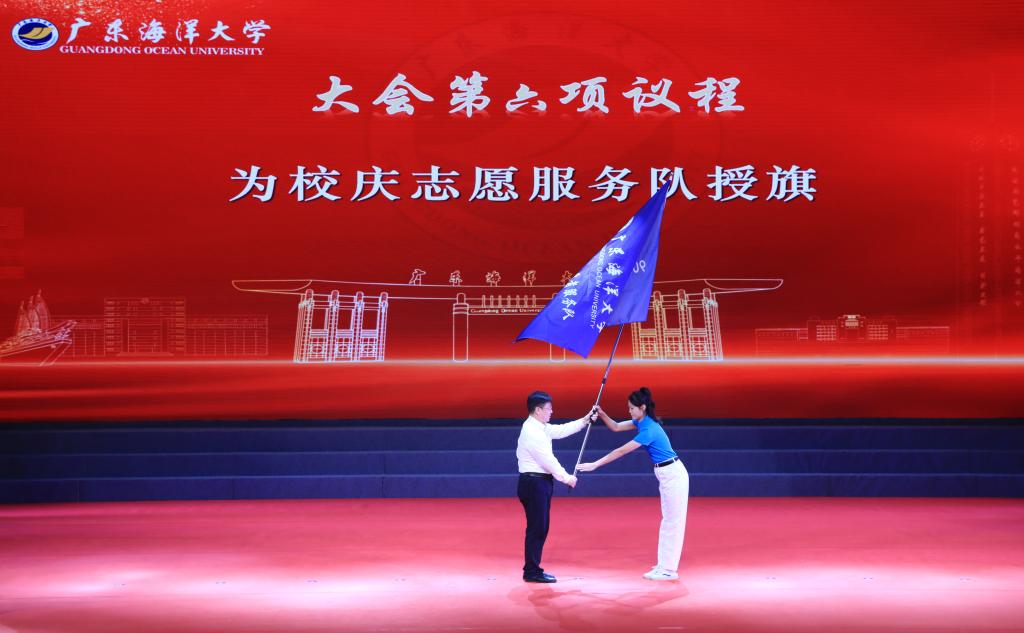 为做好90周年校庆和校友服务工作,学校专门成立了校庆志愿者服务队,为校庆和校友工作提供更加高质高效的服务。仪式上,杨洲为校庆志愿者服务队授旗。