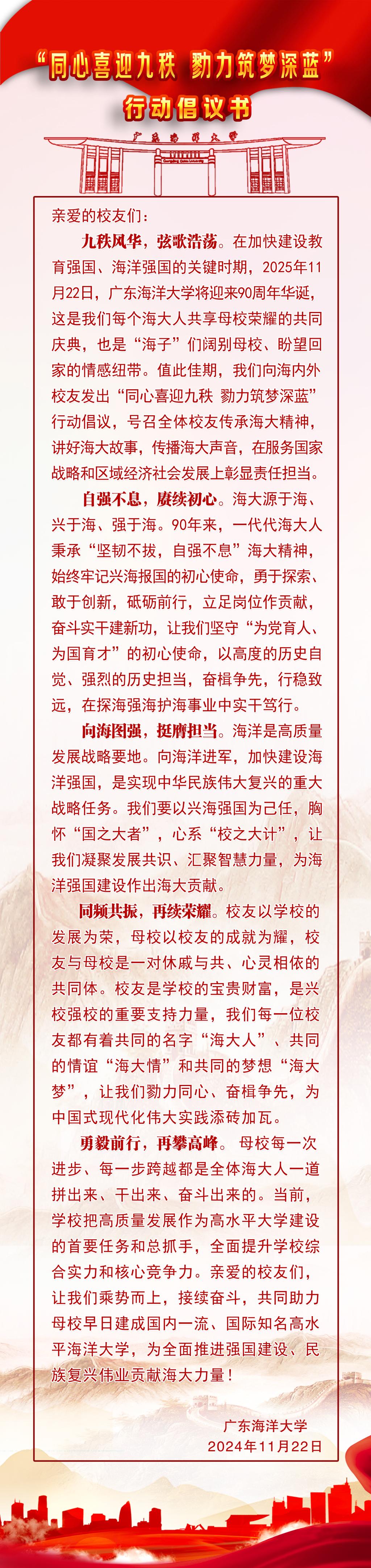 “同心喜迎九秩 勠力筑梦深蓝” 行动倡议书