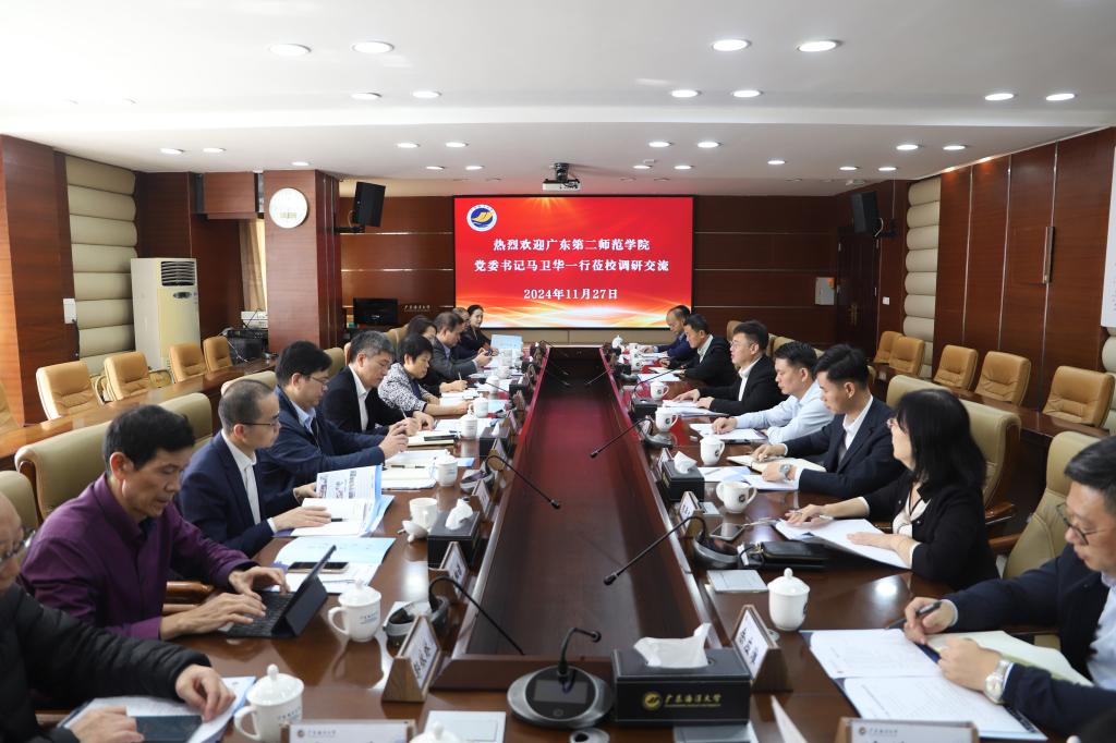 11月27日,广东第二师范学院党委书记马卫华、副校长李琴率学院相关单位(部门)领导等一行11人来开云官网调研交流。学校党委书记杨洲会见了马卫华一行并主持座谈会,党委副书记谭平出席座谈会。开云官网党政办、宣传统战部、人力资源部、教务部、科学技术部、发展规划部、数学与计算机学院、体育与休闲学院等单位(部门)领导参加座谈。