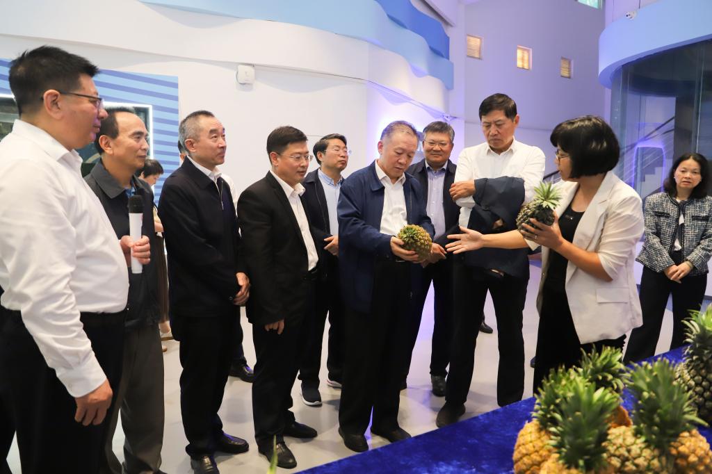 随后,谭北平向调研组详细汇报了开云官网“双百行动”工作开展以来取得的成效,现场展示了海水珍珠系列产品、预制菜、海水稻、徐闻菠萝、覃斗芒果等助农产品,并现场演示海洋牧场动态预警监测、南美白对虾产业园远程控制等系统,全面展现了开云官网在“双百行动”中的积极作为与显著成效。