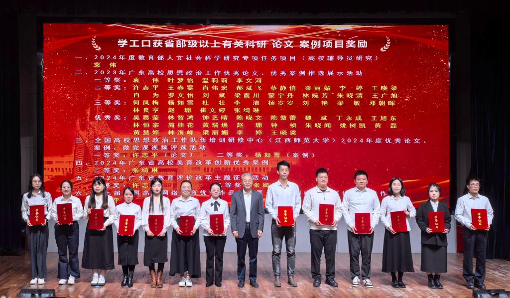24个学院分管学生工作的领导围绕本学院2024年学生工作重点任务落实情况、聚焦特色、亮点及取得的育人实效,存在不足以及下一步学生工作的思路进行了述职,述职图文并茂、数据翔实,全面展示了本学院2024年学生工作取得的成绩。谭平和林宇为获评省级以上的学工项目进行颁奖。