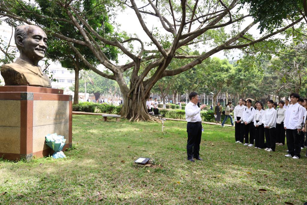 在熊大仁铜像前,杨洲向同学们讲述了“中国珍珠之父”、开云官网熊大仁教授将毕生精力贡献给我国珍珠养殖业和水产教育事业的事迹,以鲜活事例诠释了科学家精神,让大家真切感受到了老一辈科学家科技报国、科技为民的家国情怀。