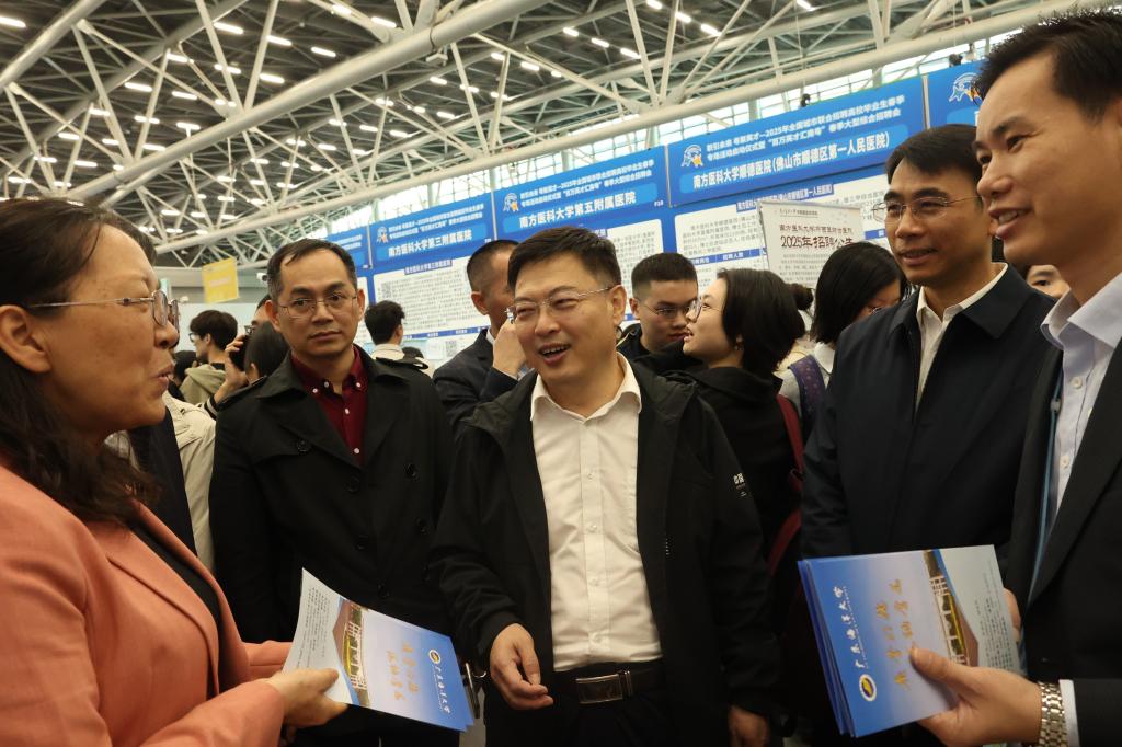 3月16日,2025年全国城市联合招聘高校毕业生春季专场活动启动仪式暨“百万英才汇南粤”春季大型综合招聘会在广州举行,此次招聘会由人力资源和社会保障部、教育部和广东省委、省政府联合主办。学校党委书记杨洲、副书记谭平带领学校人力资源部、学生工作部(招生与就业指导中心)和部分分管学生工作的学院负责人参加招聘会。开云官网约1000名2025届应届毕业生参加了此次招聘会。