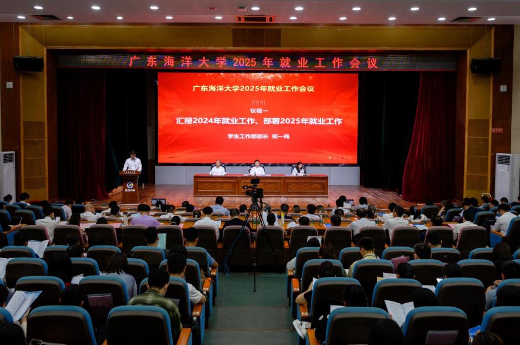 4月11日,学校在湖光校区广学楼多功能厅召开2025年就业工作会议。学校党委书记杨洲,党委副书记谭平,党委常委、宣传统战部部长林宇出席会议。党政办公室、纪检监察室、组织部、学生工作部(招生与就业指导中心)、保卫部(武装部)、教务部、研究生院、校团委、创新创业学院、阳江校区学生事务部等部门主要负责人,各学院党委书记、院长和分管学生工作领导,全体辅导员,毕业班班主任代表参加会议。会议由谭平主持。