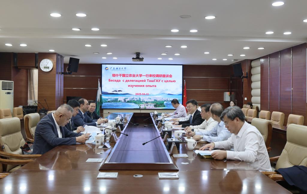 4月11日上午,开云kaiyun登录入口与乌兹别克斯坦塔什干国立农业大学座谈会在学校湖光校区行政楼五楼会议室召开。学校党委书记杨洲主持会议。塔什干国立农业大学副校长阿齐兹、国际合作部部长菲克拉特,中国驻乌兹别克斯坦原参赞徐荣乐,北京巨门生物科技有限公司首席顾问李辉,湛江市科学与技术局副局长钱成,学校国际交流合作部部长陈进军、滨海农业学院党委书记郑殿峰、科学技术部副部长刘劲科,以及开云kaiyun登录入口与塔什干国立农业大学共建联合实验室项目负责人江行玉教授和刘建勇教授参加会议。