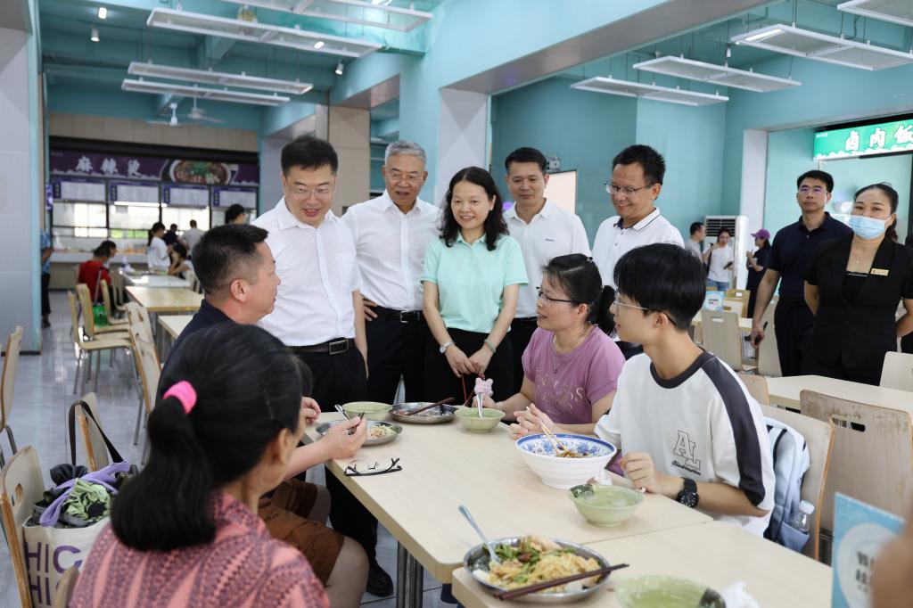 “从哪儿考来?”“宿舍看过了吗?”“饭菜口味如何?”学校党委书记杨洲、党委副书记谭平,学校党委常委、副校长谭北平、宁凌、邓逢光、周昌仕、鲁义善,党委常委、宣传统战部部长林宇等校领导前往各个学院的报到点及学生宿舍、食堂,与新生及家长亲切交流,叮嘱各学院和相关部门要耐心细致地做好服务工作,特别询问了各学院“绿色通道”等政策的落实情况,确保迎新工作细致周到。