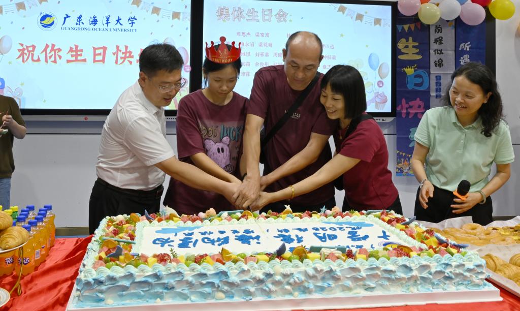 有温情相伴,亦有惊喜相随。在智慧教室内,烛光闪烁,歌声悠扬——这一天,共有31名新入学的“海大人”迎来生日,其中7名同学更是恰逢18岁成人礼。学校为报到当天过生日的“寿星”们策划了一场温馨的集体生日会。“祝你生日快乐……”欢快的歌声在教室里回荡,让刚刚远离家乡的新生们感受到了如家一般的温暖与关怀。杨洲向新生和家长们介绍了学校的发展历程与现状,并感谢家长们的辛勤培养,对新生的到来表示欢迎,寄语所有新同学与海大共同迎接90周年校庆,与海大共成长。“今天既是孩子的生日,也是报到的日子。感谢志愿者们热情的接待,更感谢学校精心准备的生日会,让我们特别感动!”学生代表与家长代表在发言中分享了对大学生活的期待与感悟,表达了对海大的热爱之情,并为能成为这个温暖大家庭的一员而感到欣慰。