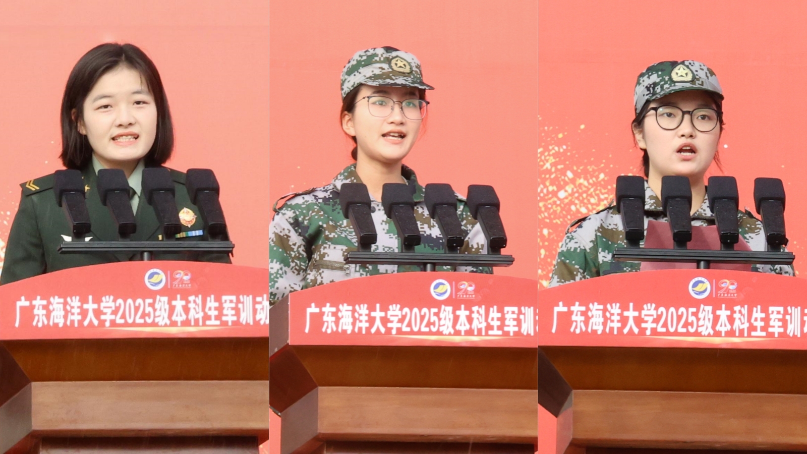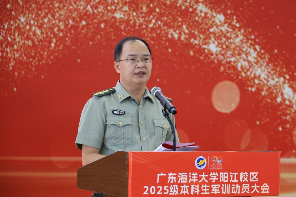 食品科学与工程学院2025级本科生杨铭源作为阳江校区参训学生代表发言,表示在接下来的日子里,将以饱满的热情、坚定的信念迎接这场训练。在军训中砥砺意志,铸就坚韧品格;在团队中学会协作,培养自律意识;在挑战中奋勇向前,成就自我价值。