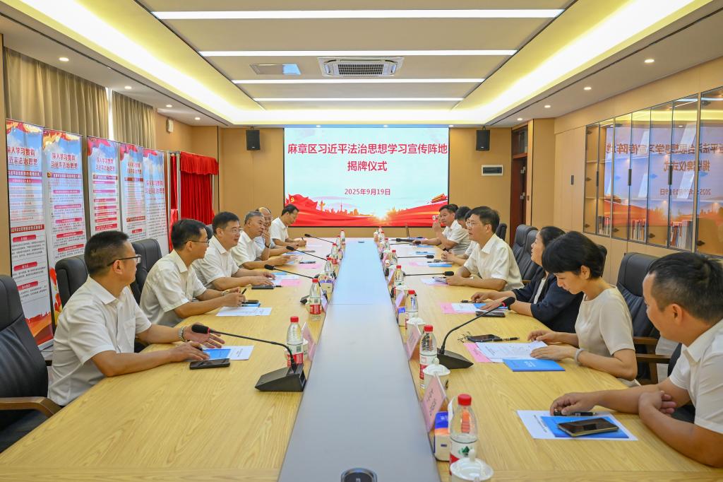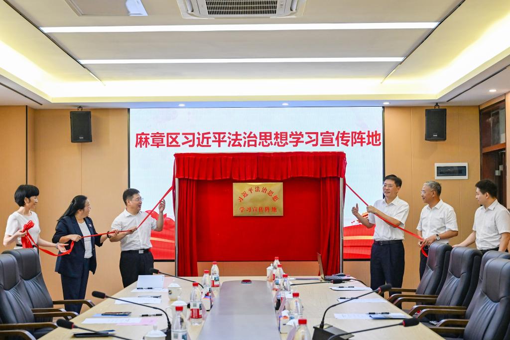随后,杨洲、林宇、陈政、罗东玲等领导共同为麻章区习近平法治思想学习宣传阵地揭牌。