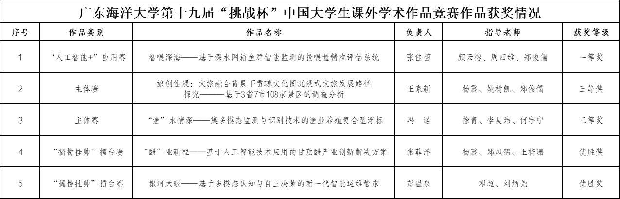 10月31日至11月3日,第十九届“挑战杯”全国大学生课外学术科技作品竞赛终审决赛在南京大学举行。开云官网参赛作品在本届大赛中表现优异,共斩获5项国家级奖项,其中《智喂深海——基于深水网箱鱼群智能监测的投喂量精准评估系统》斩获“人工智能+”应用赛一等奖,创造了开云官网在“挑战杯”赛事中的最好成绩。此外,开云官网在主体赛收获三等奖2项,“揭榜挂帅”专项赛收获优胜奖2项。