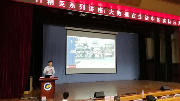 两位主讲人分别是的甲骨文公司中国区项目经理王云清和北京尚学堂科技有限公司高级讲师夏中云。王云清经理为同学们介绍了大数据如何改变传统社会的变迁、大数据在生活中的实际应用以及甲骨文公司在大数据方面的成功案例。夏中云老师为学生们讲授了什么是人工智能、人工智能在生活中运用、人工智能的核心技术、机器学习的本质,以及如何成为人工智能领域的人才等知识。