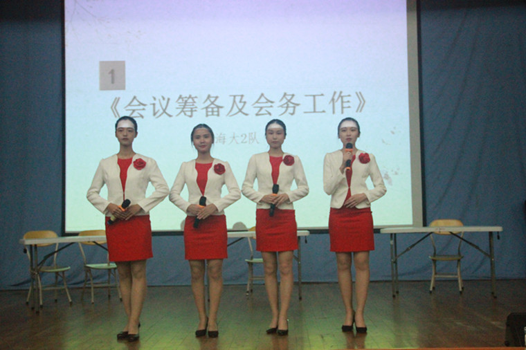 本次汇报会内容丰富,形式多样,汇报演出在观众热烈的掌声中拉开序幕。在情景展示环节中,海大1队的《会议筹备及会务工作》和海大2队的《信息与调研》向老师及同学们展示了秘书的日常工作场景与内容,在应急处理方面展现出良好的专业素养。舞蹈节目《春天的芭蕾》以优雅的舞姿获得了观众的一致好评;幽默风趣的小品《面试》博得阵阵笑声和掌声。