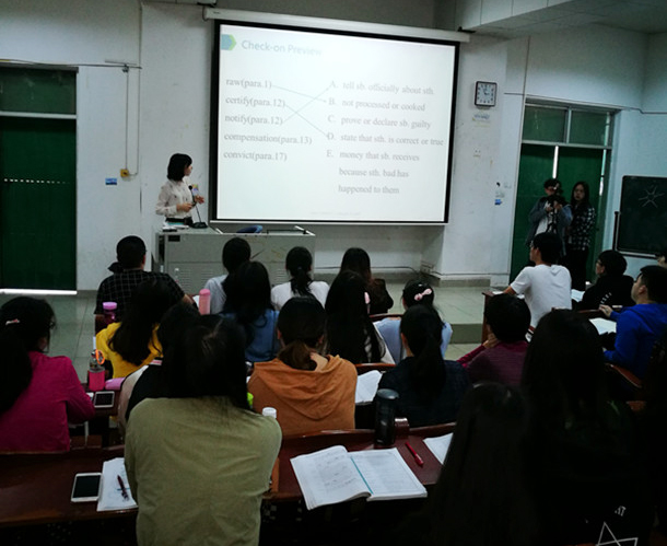 为进一步提高课堂教学质量,发挥优秀教师的教学示范引领作用,促进教师间相互交流。外国语学院于4月11日和18日分别在海滨校区实验楼402、湖光校区主楼231举办了两场教学公开课授课观摩活动,学院院长郭遂红、副院长何谦卫和当天没课的教师参加了观摩学习。