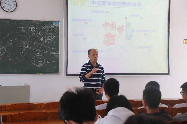 崔照明以“中国梦”为主题,从民族复兴梦、人民幸福梦、改革开放梦、人人出彩梦这四个方面向同学们阐述了中国梦,并列举了诸多关于中国梦的生活事例,让同学们切身感受到围绕于我们身边的“中国梦”,意识到中国梦与自己的日常生活息息相关,只要端正自己的态度,为自己的生活而努力奋斗,就能为实现中国梦的伟大事业贡献出自己的一份力量。